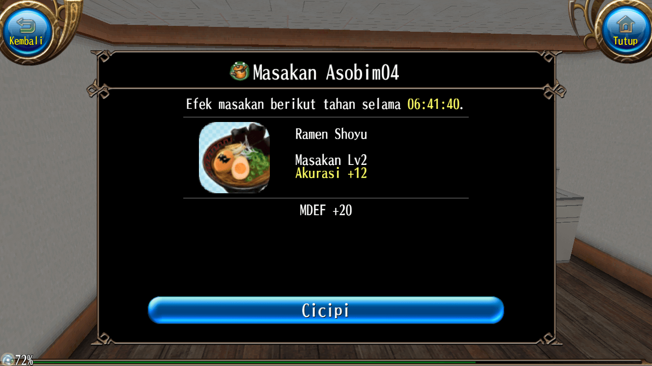 *Apabila kamu mencicipi masakan orang lain dan ternyata efeknya sama dengan efek stok masakanmu, maka efeknya takkan digantikan dan sisa waktu masakan sebelumnyalah yang tetap akan dihitung.